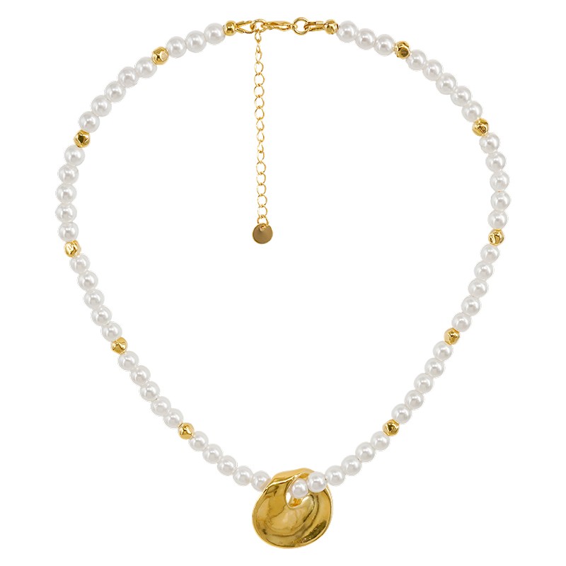 Collar con Perlas y Disco Dorado Texturizado