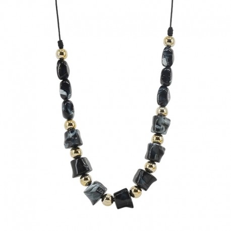 Collar con cuentas acrílicas irregulares negras y cuentas CCB doradas