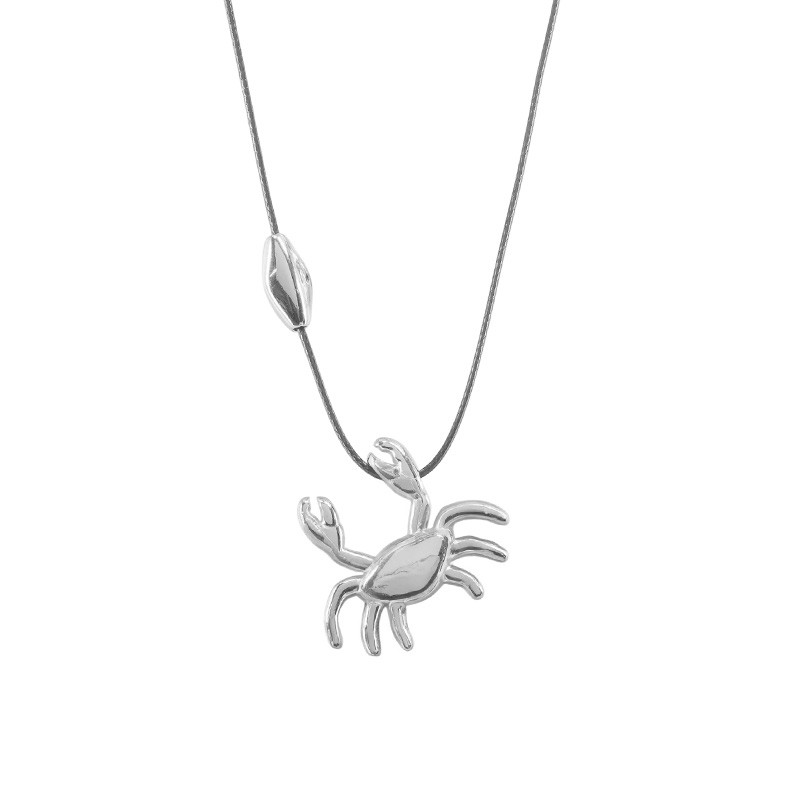 Collar con colgante de cangrejo de metal plateado y cordón negro