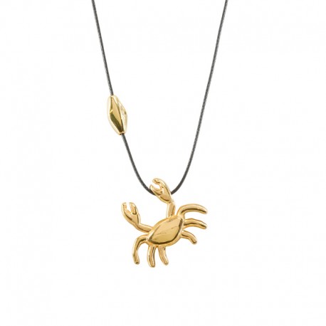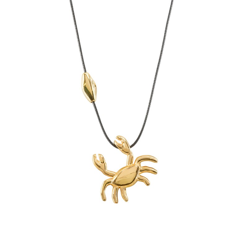 Collar con colgante de metal dorado en forma de cangrejo y cordón negro