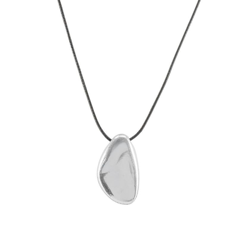 Collar con colgante de metal plateado en cordón negro